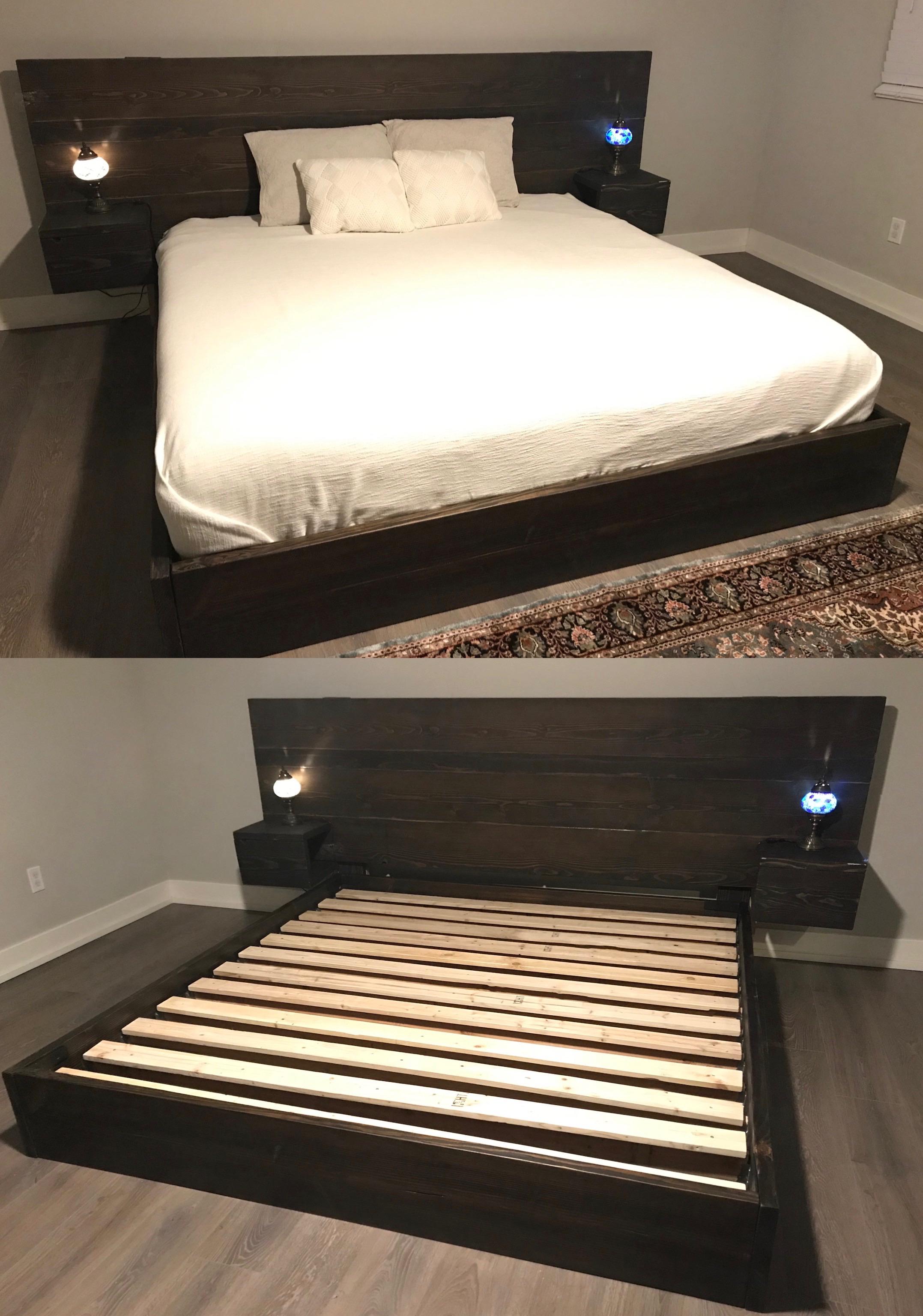 But have you thought about your storage situation? You probably already have a nightstand lamp but a bed with lights can be a much more functional. How to build a diy nightstand. Two @ 24″ (top & bottom) and two @ 11 1/2″ (sides). Floating headboards are ones that don't need to be attached to the bed frame like classic standing headboards, but instead are attacked to the wall or stood .